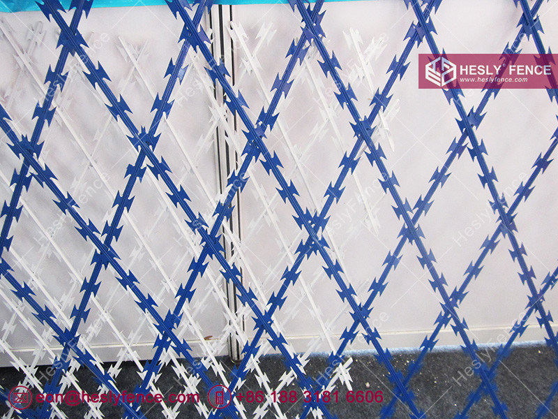 (ملحوم)شبكة شفرات حلاقة معينةهي مصنوعة من أسلاك شفرات حلاقة مستقيمة ملحومة معًا، ويمكن صنع نمط الشبكة على شكل ماسي أو مربع أو مستطيل. كالمعتاد، يتم تعبئة شبكة شفرات الحلاقة الملحومة في شكل لفة للنقل.تستخدم شبكة أسلاك شفرات الحلاقة في أي تطبيقات عالية الأمان لحماية الممتلكات المحلية والتجارية والصناعية.