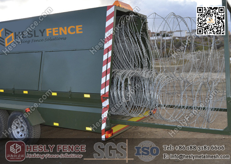 الـحواجز التنفيذ السريعنظام (MSB) هي سيارة طريق مصممة بالكامل من قبل HeslyFence®من أجل توفير حماية السلامة السلبية السريعة من خلال نشر سلك الحلاقة، في أي مكان.