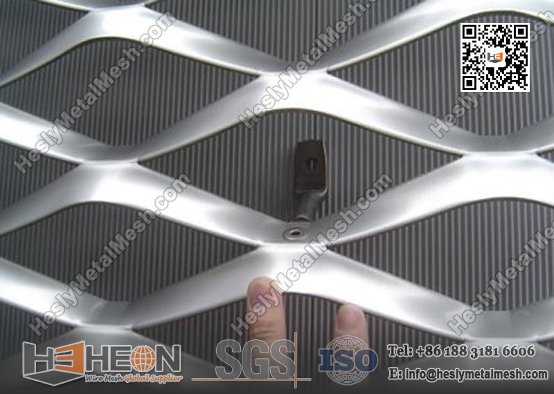 المعدن الموسع من الألومنيومهي ورقة من الألومنيوم تم تقطيعها في وقت واحد وتمددها إلى شبكة صلبة لا تتحرك مع فتحات على شكل ماس. إنها توفر تأثيرًا مرصعًا ، مما يسمح للضوء والصوتالهواء والماء ليمر من خلاله.